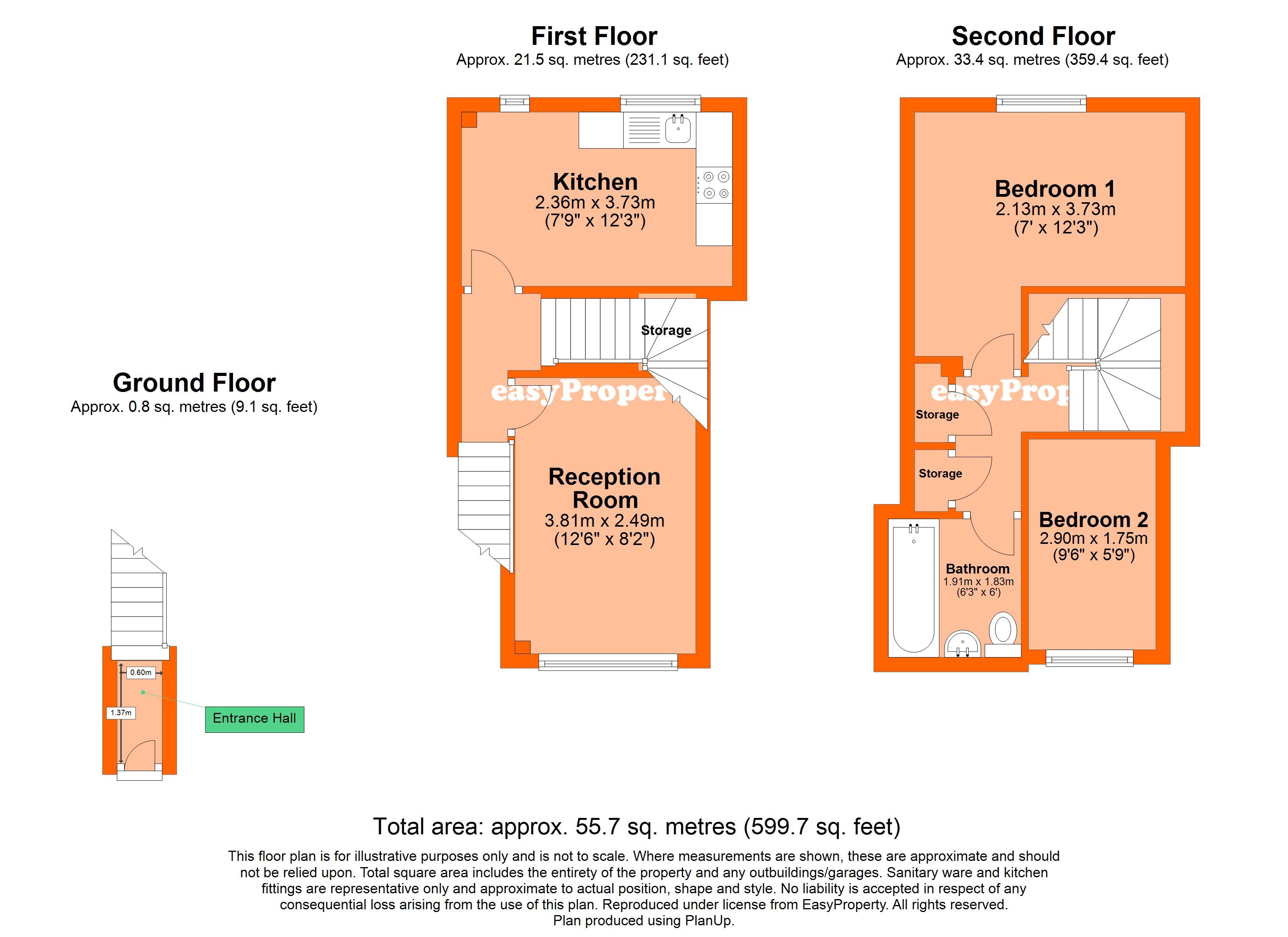 This home is set on three levels, entering on the ground floor where you will immediately take stairs to the first floor. Here you will find a spacious reception room and seperate kitchen/breakfast room, complete with appliances. Take stairs to the second floor, on which two bedrooms and a family bathroom are situated.