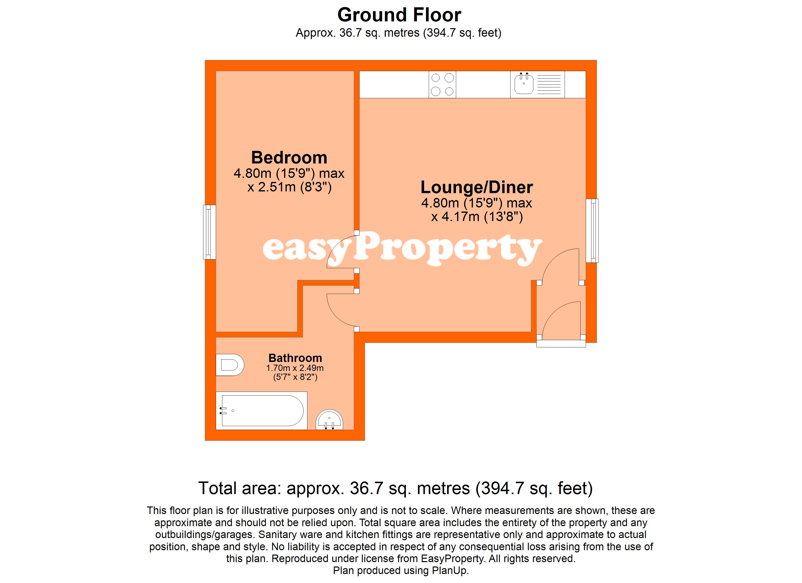 The property comprises: Entrance porch; Open-plan kitchen and reception room, with modern fitted appliances; Double bedroom; Bathroom.